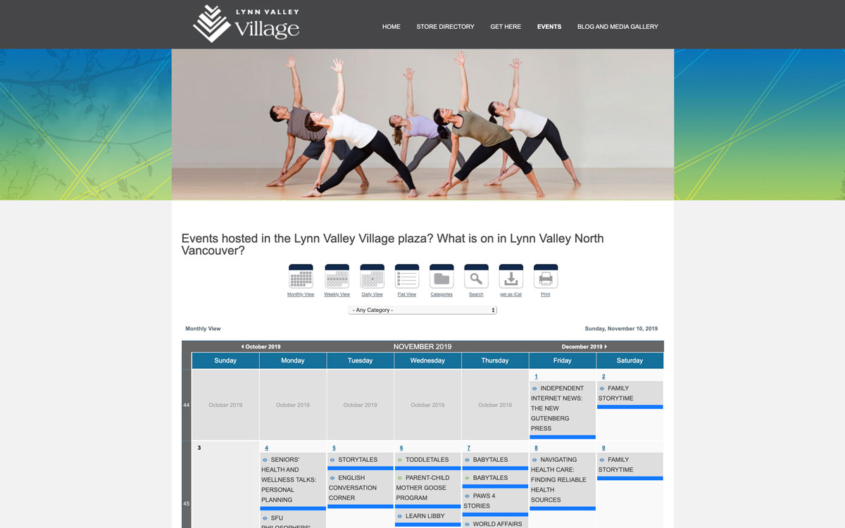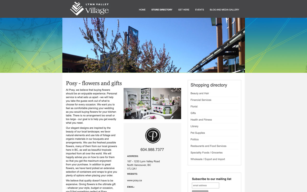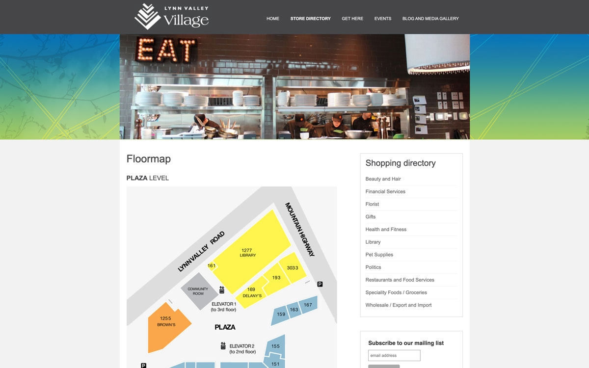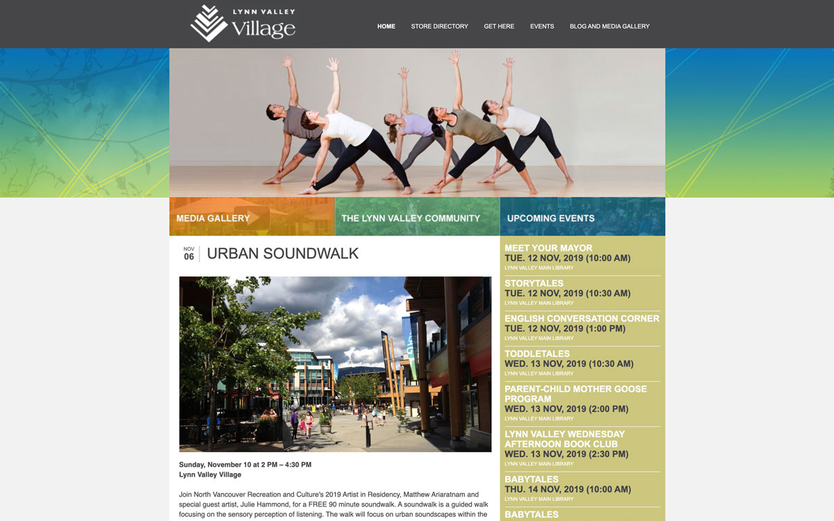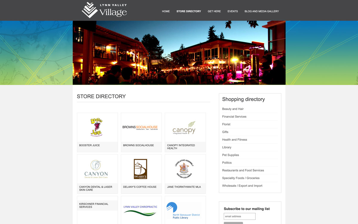 The website for Lynn Valley Village is now live www.lynnvalleyvillage.com. When designing the site I looked at the existing print design for the village in order to create a unified connection between print and online marketing.